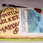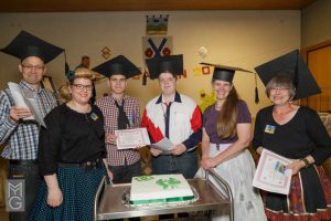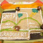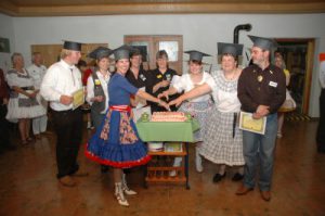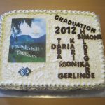 Alle 4 haben sie mit Bravour bestanden. Auch beim anschließenden Praxis-Test (…mit verbundenen Augen im Square tanzen….) zeigten die Students ihre Qualitäten und Fahigkeiten. Kurzum: alle haben bestanden und erhielten aus der Hand unseres Callers das begehrte Diplom. Doch auch der mit den meisten angereisten Mitgliedern vertretene Club (die FVV Squeerdancers) ließ es sich nicht nehmen, den Students für ihre hervorragenden Leistungen eine Überraschung zu übergeben. Nach der stimmungsvollen Zeremonie verteilten die Students noch die extra für die Graduation hergestellte Torte bzw. Muffins die alle liebevoll das Thema der Graduation widerspiegelten.