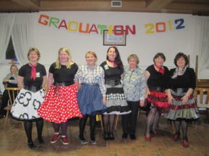 "Aufgeregt, kribbelig und voller Erwartungen trafen wir im wunderschön und liebevoll dekorierten Vereinsheim ein. Gäste aus den verschiedensten SD-Clubs (.......) hatten sich auf den Weg gemacht, um unserer Graduierung beizuwohnen. Was würde auf uns zukommen, waren wir den Anforderungen trotz fleißigen Üben gewachsen? Der erste Tip nahm ein wenig der Anspannung und ließ der Freude und dem Spaß am Tanz freien Lauf. Mit diesem Gefühl starteten wir in den ersten Teil der praktischen Prüfung, welche so einige "Handicaps" bereit hielt. Anschließend fand der theoretische Teil unter strenger Aufsicht statt. Dieser erforderte unsere volle Aufmerksamkeit. Stärken durften sich danach alle an einem köstlichen und reichhaltigem Buffet. Zur großen Erleichterung aller Students, wurden wir nach Bestehen der schriftlichen Prüfung zu unserer letzten Praxisaufgabe zugelassen. Hurra, geschafft! Der Höhepunkt des Abends war die feierliche Abschlusszeremonie, die uns langsam verinnerlichen ließ, dass wir ab sofort keine Students mehr waren.