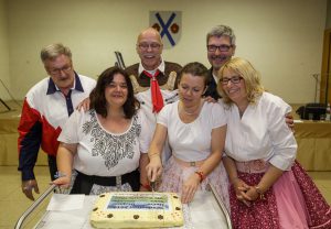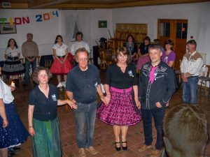 Mehr als 25 Gäste kamen zusammen aus den Vereinen der Sandhoppers Eisenberg, action fraction Kaiserslautern, Hill Top Squares Baumholder, Glan Valley Jumpers Raumbach, Bridge House Twirlers und sogar aus Bamberg kamen Square Dance Freunde. Natürlich gab es wieder die obligatorische Torte als Krönung!