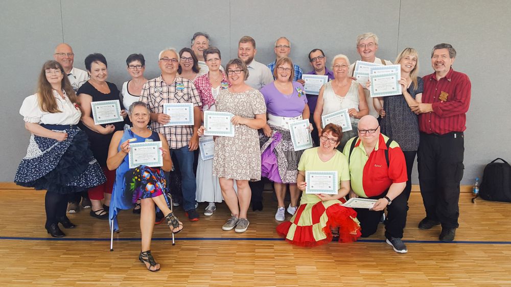Martin & Kathi, Melanie, Hans & Margit, Hans-Benno (Sandhoppers), Peter & Ruth (Hill Top Sqaures), Ingrid & Roland (Schinderhannes Swingers), Kathrin (Joyhunters), Ilse, Konny & Peter (Rhine Mosel Squeezers) Angela (Mannheim Old West), Günter (Bandits Ladenburg)